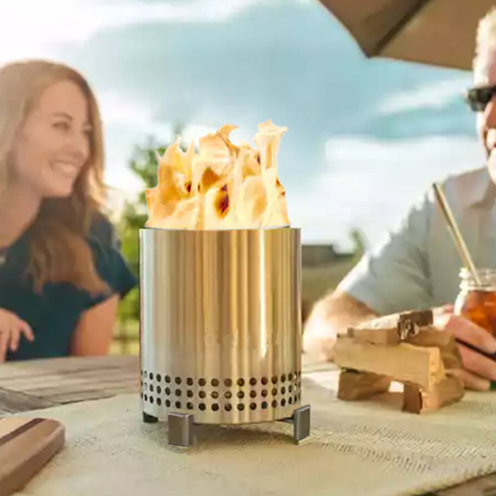 This tabletop fire pit is fueled by wood chips or pellets, making it a clean and easy-to-use option for your needs.